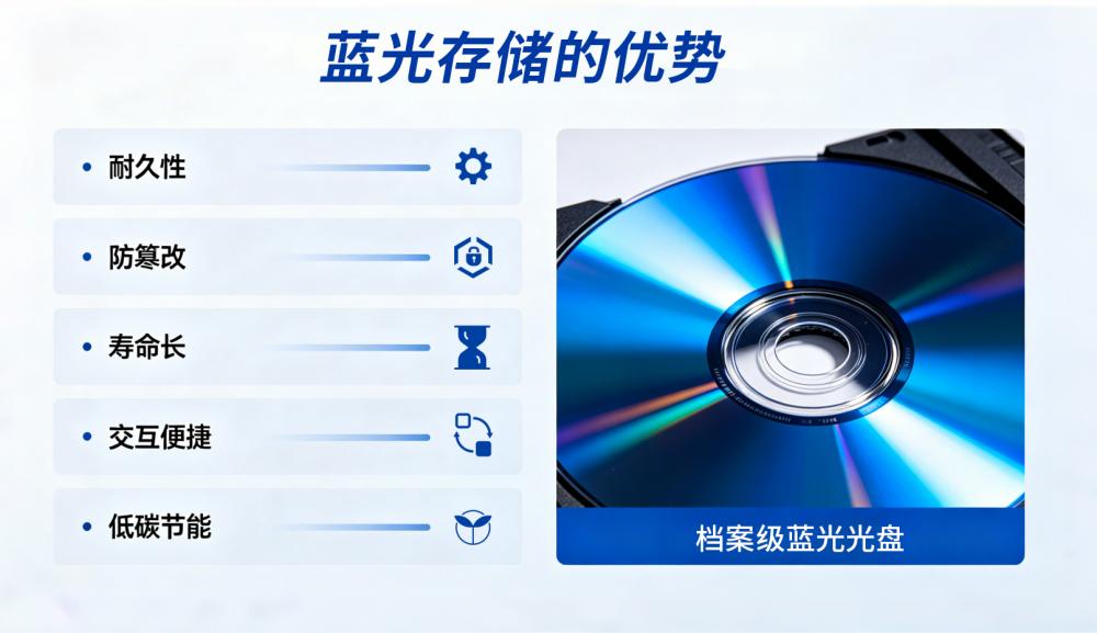 对于数据存储来说,存储介质是关键。随着存储技术加速迭代发展,蓝光存储,尤其是专业归档级蓝光光盘,因其耐久性、防篡改、寿命长、交互便捷、低碳节能等优势,已成为存储生态的重要组成。