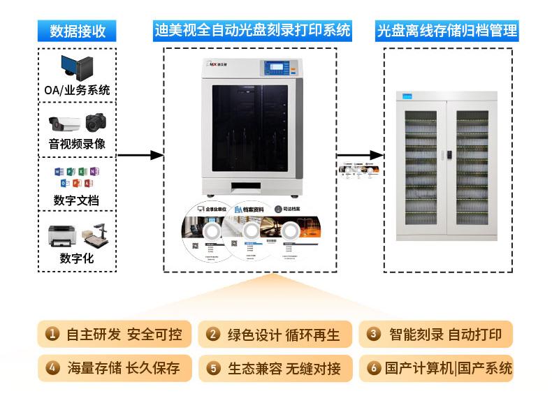 数字化时代,如何实现电子档案的长期安全存储已成为档案领域的重要问题。蓝光存储具有高容量、高兼容、低成本、低能耗、防篡改等特性,已成为主流存储介质。迪美视档案级蓝光光盘存储寿命可达30年以上,为电子档案的长久存储提供了可靠的解决方案。